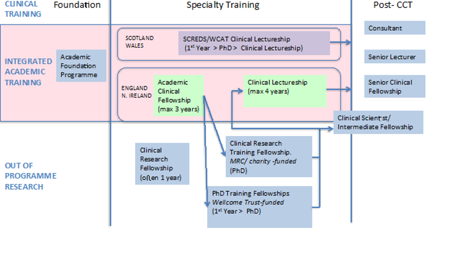The training pathways differ between the countries of the UK (see image below).